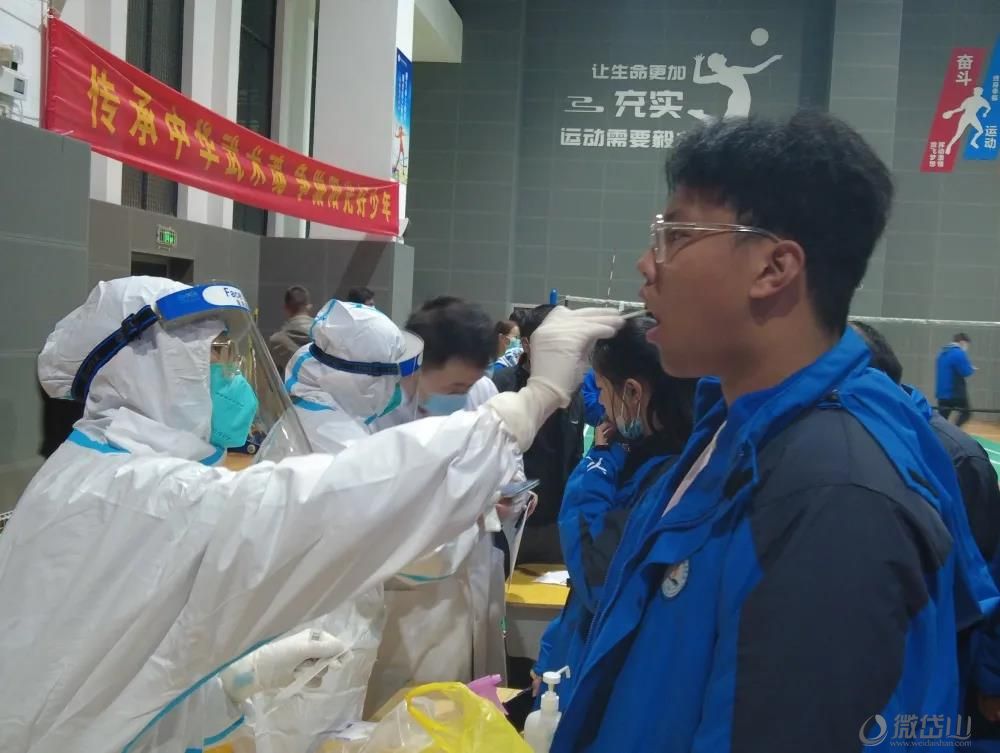 采样现场,师生有序排队,在工作人员的指导下有条不紊地分批进行核酸检测。医护人员采样专业认真,班主任带队细致严谨,领导小组监管周密,家长配合积极,大家齐心协力,各司其职,配合默契,采样过程井然有序。