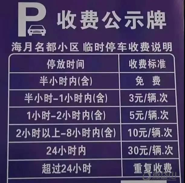 ▲该小区明文规定,车主到收费停车场,半小时内停车免费,超过半小时则要收费